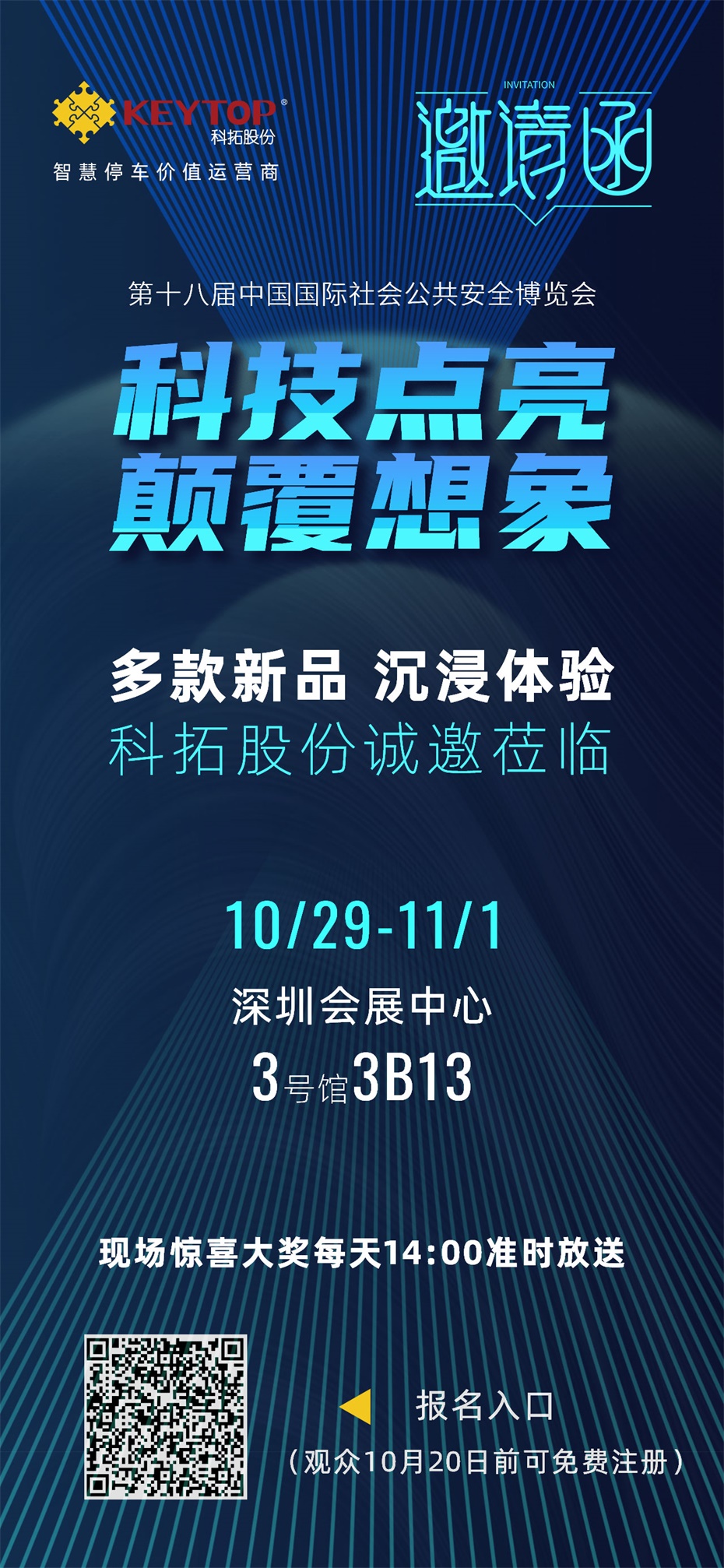 - 2021年10月29日- 11月01日,被視為行業(yè)產(chǎn)品技術(shù)“風(fēng)向標(biāo)”的第十八屆中國(guó)國(guó)際社會(huì)公共安全博覽會(huì)(以下簡(jiǎn)稱(chēng)“安博會(huì)”)將在深圳福田會(huì)展中心隆重舉行。本屆安博會(huì)總面積達(dá)11萬(wàn)平方米,5736個(gè)標(biāo)準(zhǔn)展位,1263家企業(yè)參加展覽,這是疫情后舉辦的全球最大規(guī)模的安防專(zhuān)業(yè)安博會(huì)。作為深耕智慧停車(chē)領(lǐng)域15載的企業(yè),科拓股份受邀參加本屆安博會(huì),作為科拓業(yè)務(wù)矩陣中的重要板塊速泊停車(chē)服務(wù)要將在展會(huì)上露出。