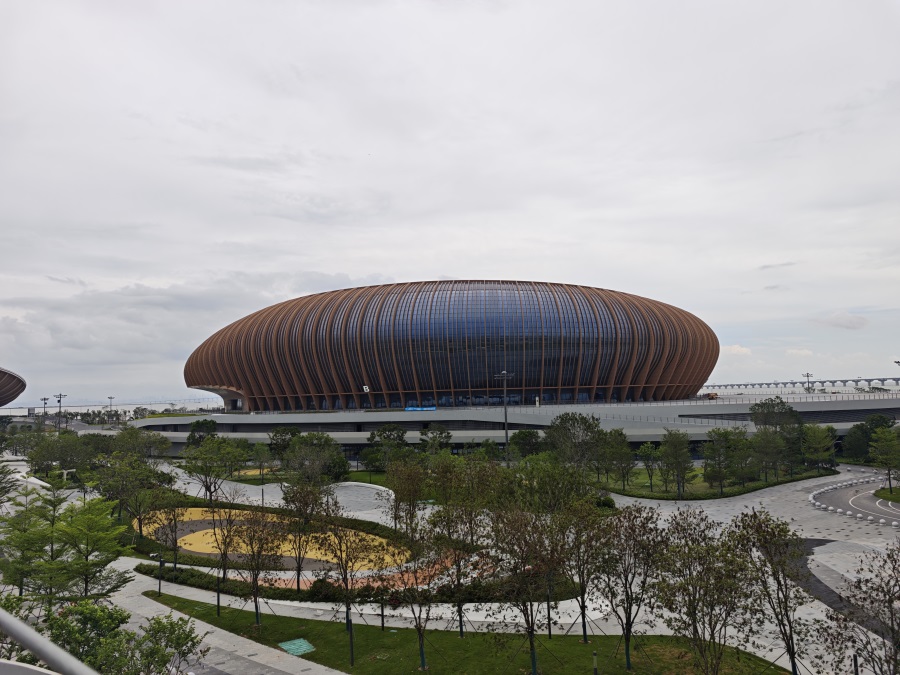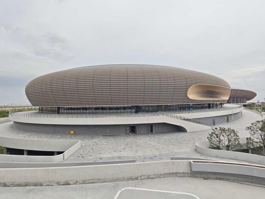 - 大灣區(qū)文化體育中心,巍然屹立于粵港澳大灣區(qū)的幾何中心——廣州市南沙區(qū)萬頃沙鎮(zhèn)。項(xiàng)目坐擁甲級(jí)綜合體育場(6萬座)、多功能體育館(2萬座)及游泳跳水館(四千座),是一個(gè)能夠承接國際頂級(jí)賽事與大型文化演藝活動(dòng)的現(xiàn)代化綜合場館群。